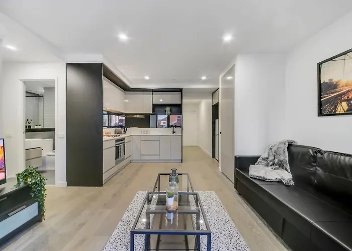Das 55 m² große A Comfy 2Br Apt 5-Min Walk To Melbourne Central empfängt Reisende im Zentrum von Melbourne City, in 18 Gehminuten Entfernung von AWAY der Eureka Skydeck 88 Aussichtsplattform entfernt. Dieses Apartment bietet einer Terrasse mit einem Ausblick auf die Stadt und liegt in unmittelbarer Nähe zur Staatsbibliothek von Victoria.